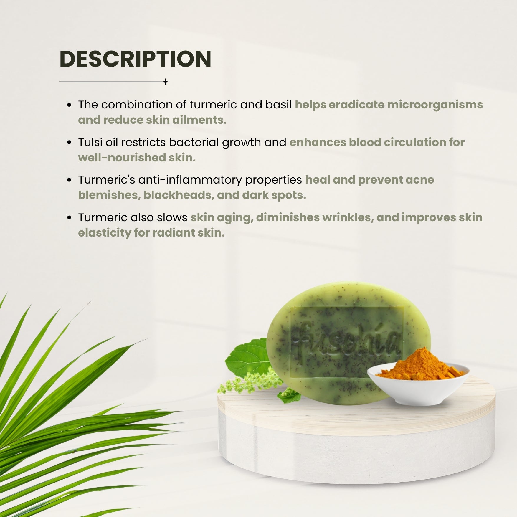 - The combination of turmeric and basil helps eradicate microorganisms and reduce skin ailments.